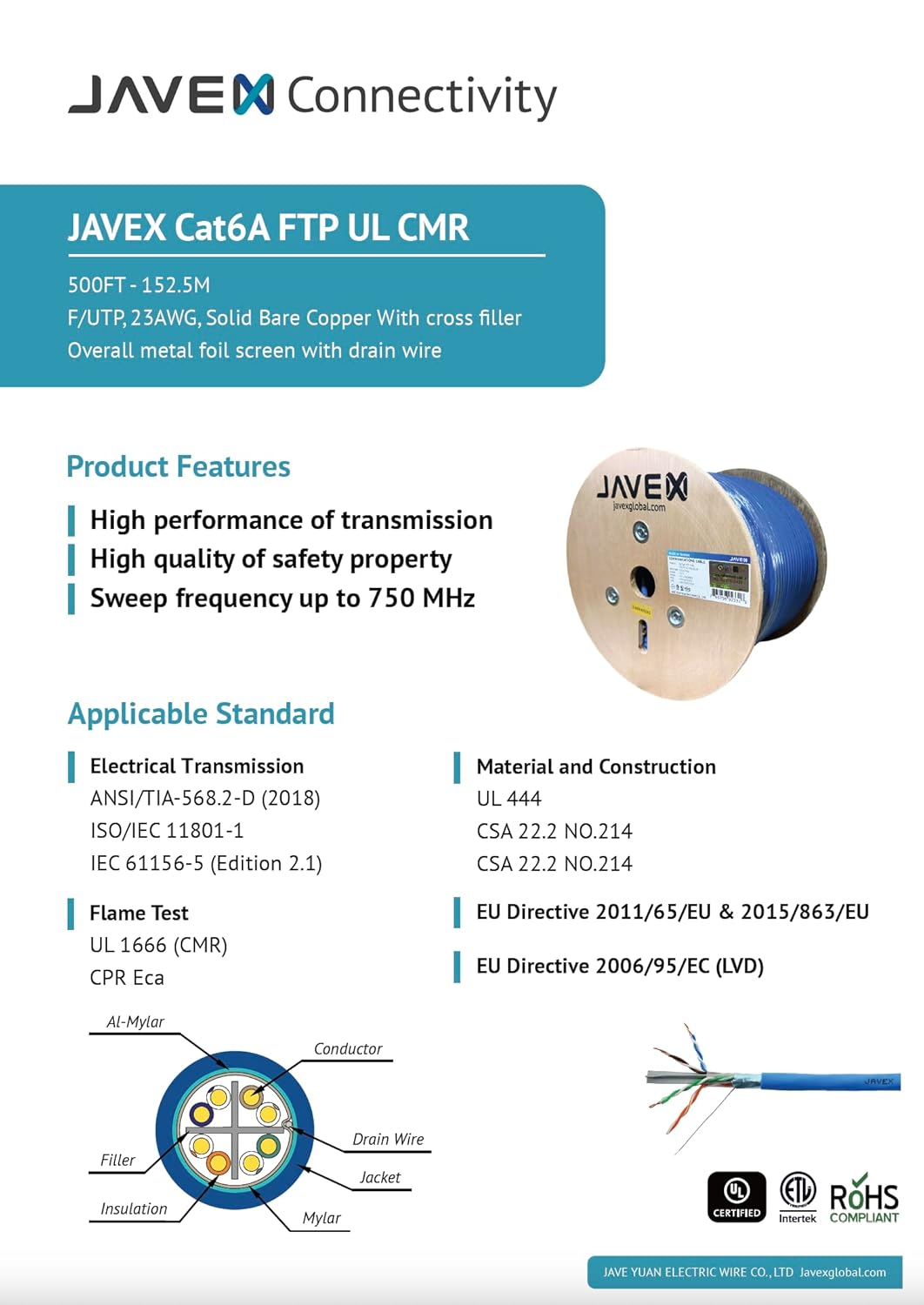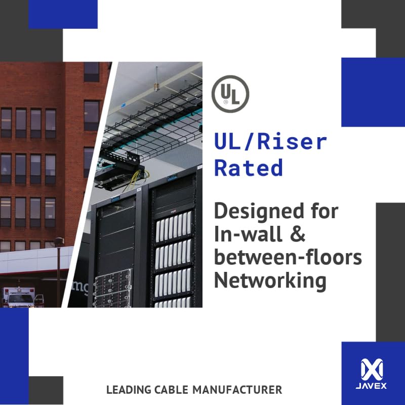 - [High-speed Shielded Transmission] JAVEX Cat6A 23AWG CMR rated network cables meet up–to-750Mhz performance to support data transmission and comply with IEEE 802.3af (PoE) / IEEE 802.3at (PoE+) in structure cabling for horizontal and building backbone