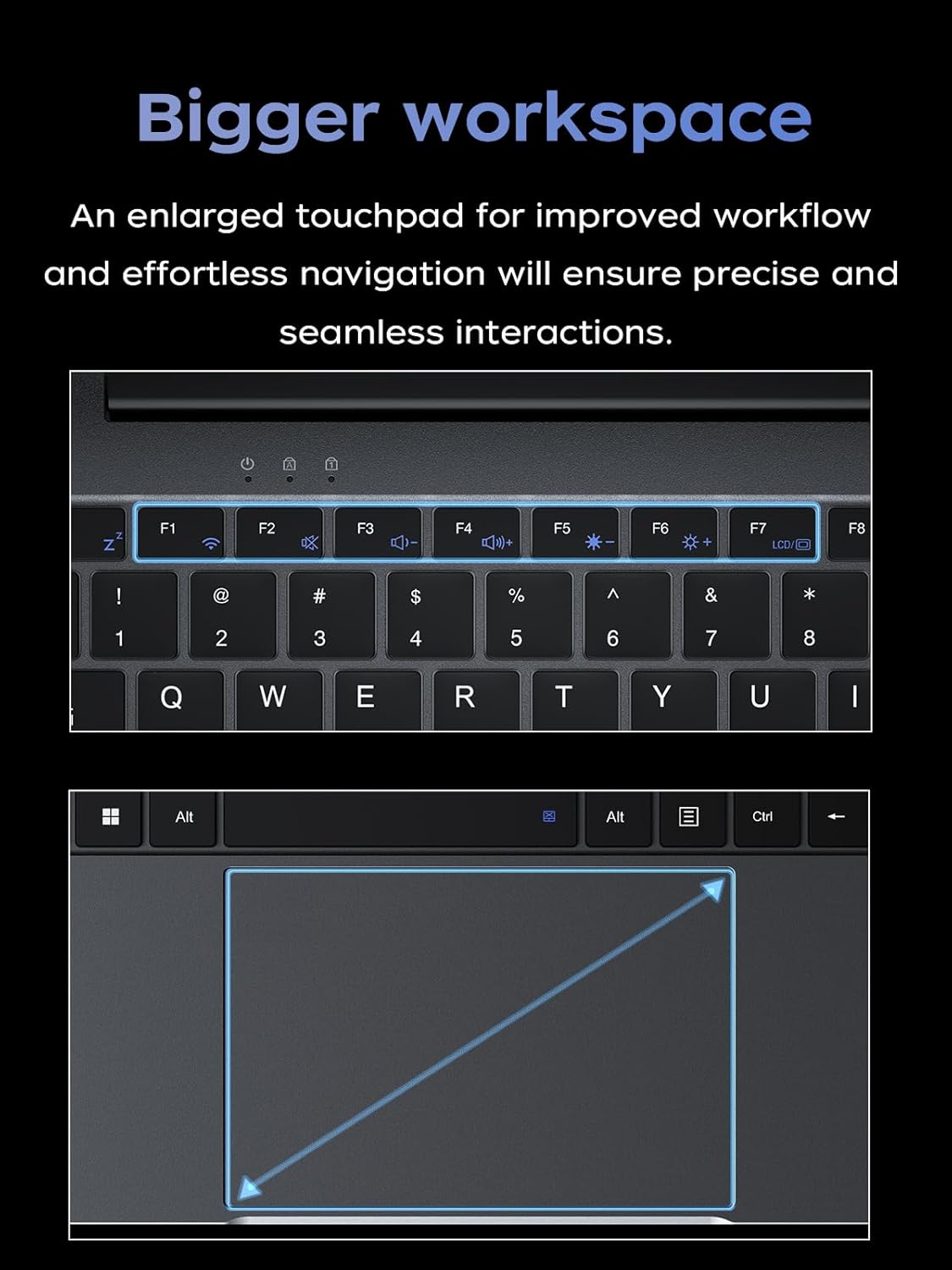 - 【16GB RAM & 512GB ROM】Equipped with 16GB of DDR4 RAM and a fast 512GB M.2 SSD, this windows laptop delivers up to 50% better performance than DDR3 models, ensuring smooth system operation and efficient handling of personal files. With expandable storage options—supporting a 128GB TF card and upgradable to 2TB SSD—you’ll never run out of space for your important documents and media.