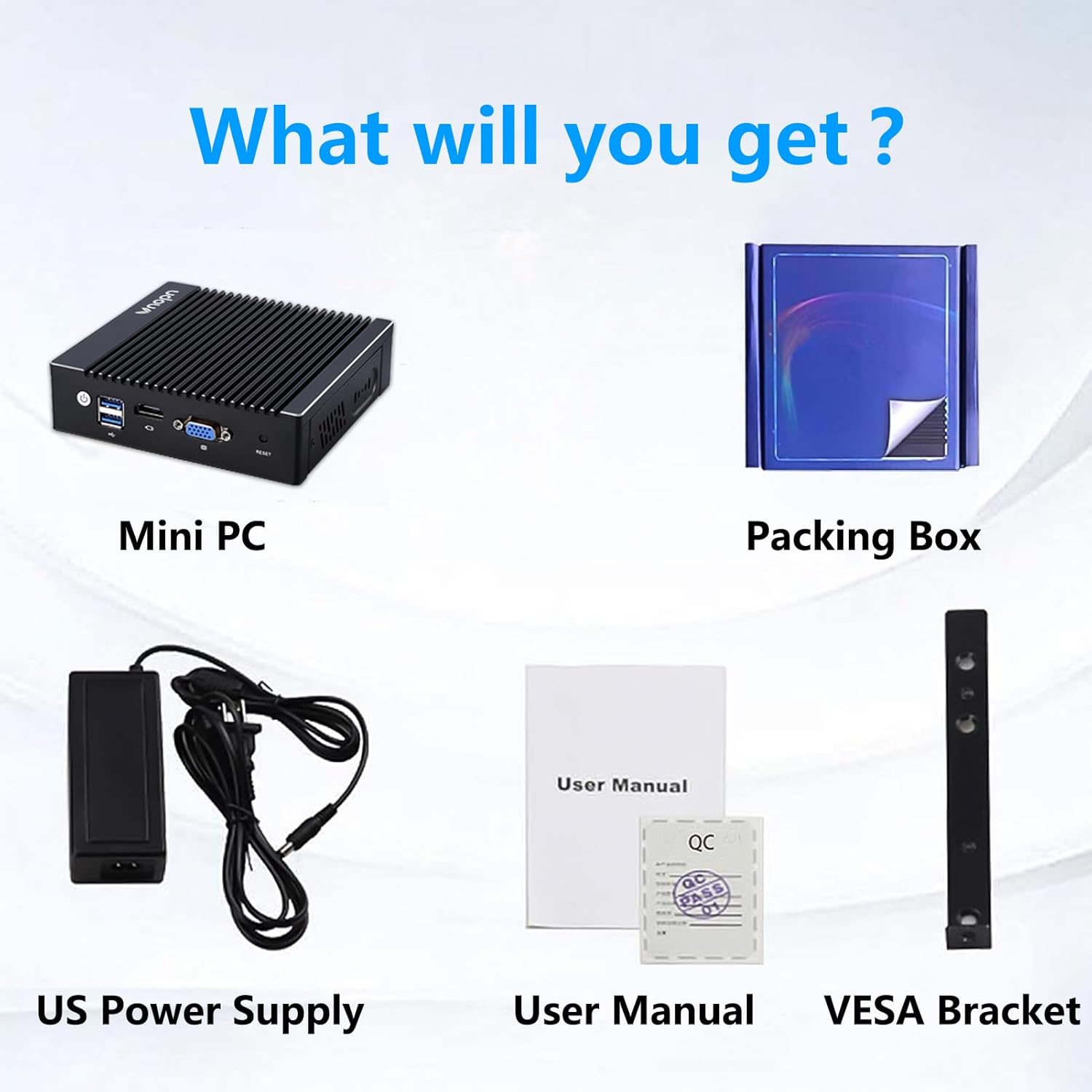 - 【4x Intel 2.5GbE Ethernet Ports】 This fanless mini pc all uses Intel i225 chip, supports 4x 2.5 Gigabit ethernet to keep stable and high speed. It has a good compatibility for soft routing, home firewall and other network appliances. This compact pc has more I/O Interface to meet your more needs: 1x HD, 1x VGA, 4x RJ45 LAN, 2x USB3.0, 1x DC IN